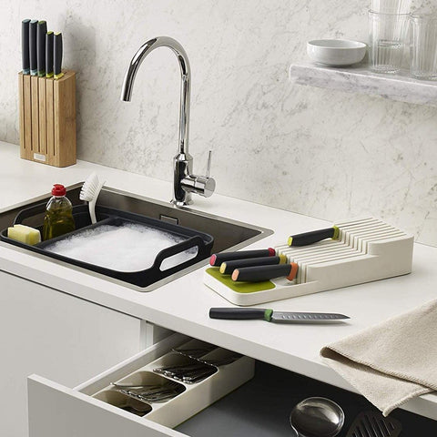 You're a professional home chef, and your family enjoys the benefits of having such a great cook. But kitchen utensils come with the job, and you have so many filling up your kitchen drawers. Easily organize your knives with the Smart Stack Knife Organizer. Pair this with the Smart Stack Organizer for utensils to ensure your drawers are clean and organized efficiently.