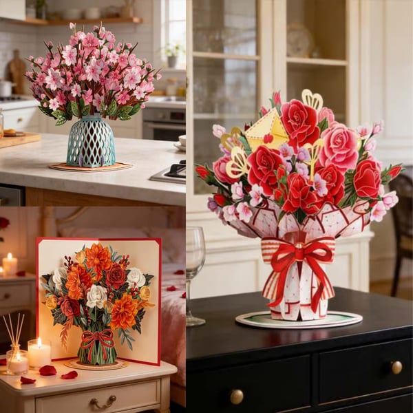 The blank interior lets you freely write your own heartfelt message. Multiple bouquet styles: Lovely Roses Bouquet, Valentine Bouquet Pop Up Card, etc., 6 styles in total—there’s always one that perfectly matches your love story.