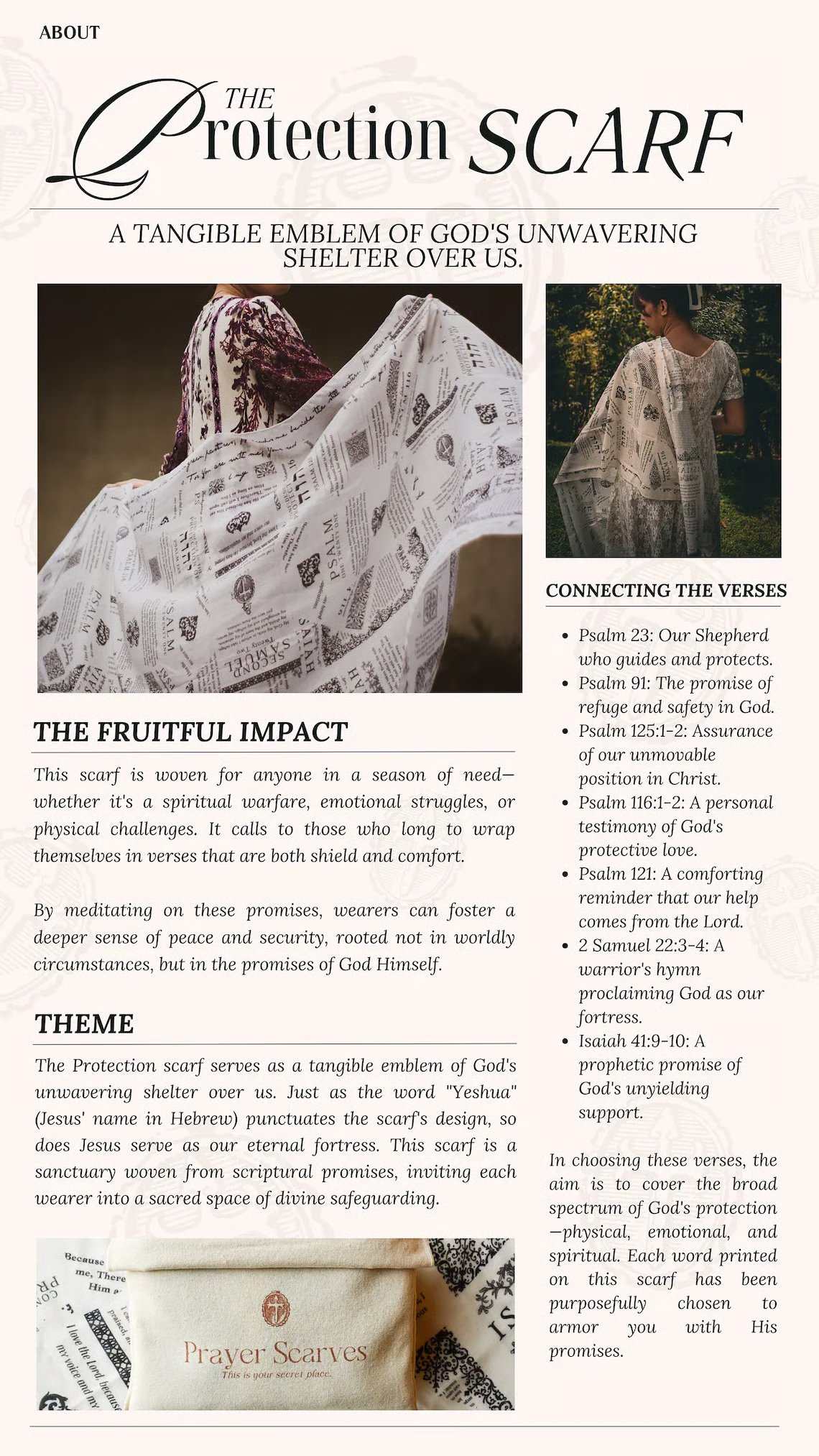 Each chosen verse from Psalm 125 to Isaiah 41 is a testament to His protective grace in every challenge. They stand as an armor of comfort and strength, offering peace and security that transcends the physical material of the scarf.