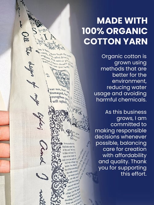 🟨This scarf made with 100% organic cotton yarn, drapes well and stays put, ideal for those seeking a tangible connection to the Word during their daily devotion or offering a comforting presence on any journey.