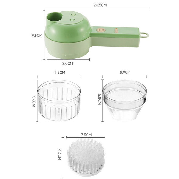 🄬4 in 1 Handheld Electric Vegetable Cutter Set:Handheld Electric Vegetable Cutter Set includes 4 in 1 functions of slicing, cooking, peeling and cleaning brush. With it, you can have an electric vegetable slicer and an electric meat grinder at the same time. One machine is multi-purpose, making food preparation easier and faster.